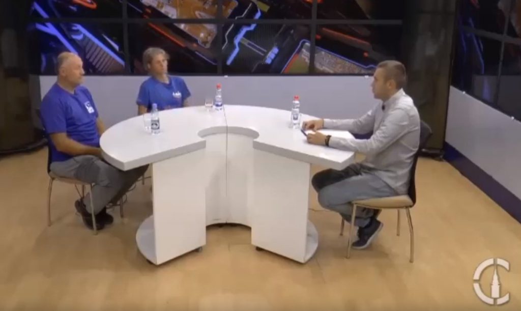 O Danu pešačenja razgovarali su sa planinarskim voditeljem Vladom Šućurom na TV Subotica: Calbert Karolj-predsednik PSK Spartak, Andrea Štraka potpredsednik PSK Spartak, dr Zorica Dragaš i Dijana Gabrić ispred Crvenog krsta