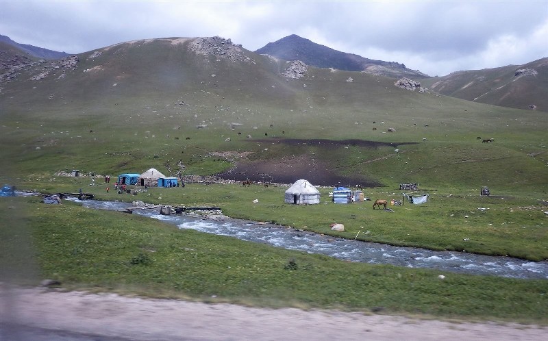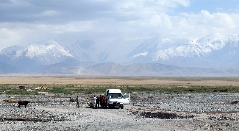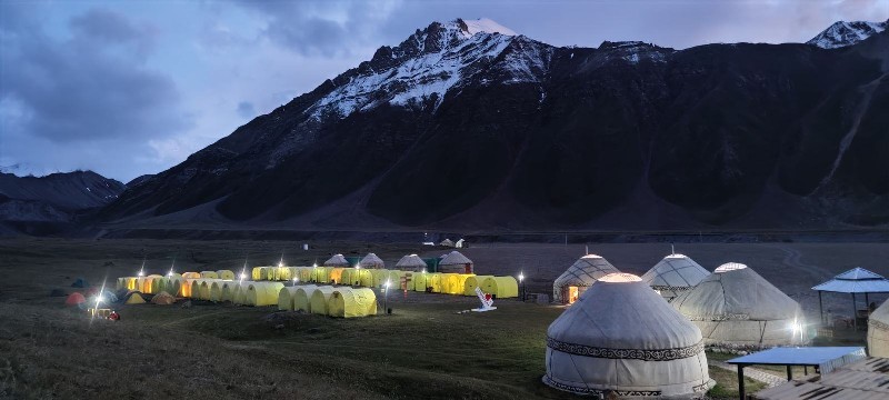 Nedugo zatim, prevozni kombi je došao po nas, odveo nas u lokalnu prodavnicu da kupimo nesto za sledecih dana i krenuli smo u bazni kamp. Posle oko 5,5 sati voznja preko prevoja Taldik od 3600m, starim vojnim putem stigli smo u bazni kamp na 3600mnv.