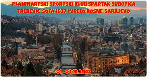 Polazak iz Subotice u 15.30 časova od železničke stanice(Park Ferenca Rajhla). Okupljanje 10 minuta ranije. Putovanje do Sarajeva gde ćemo imati smeštaj. Očekivani dolazak do ponoći.