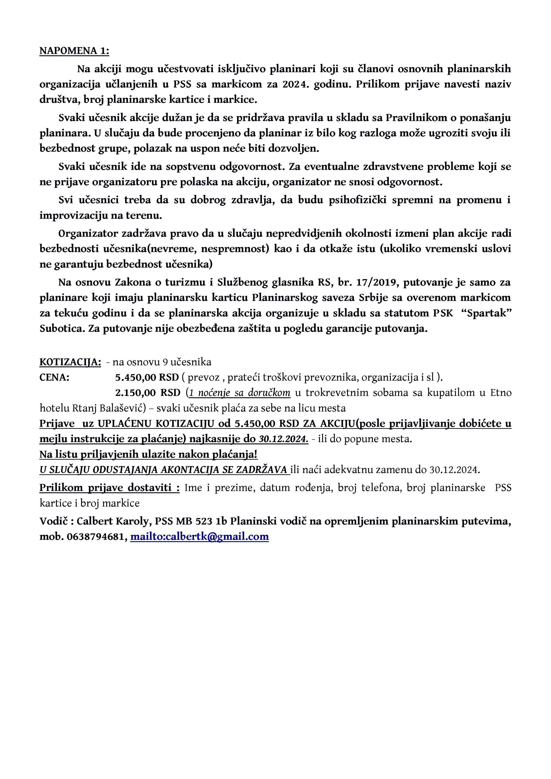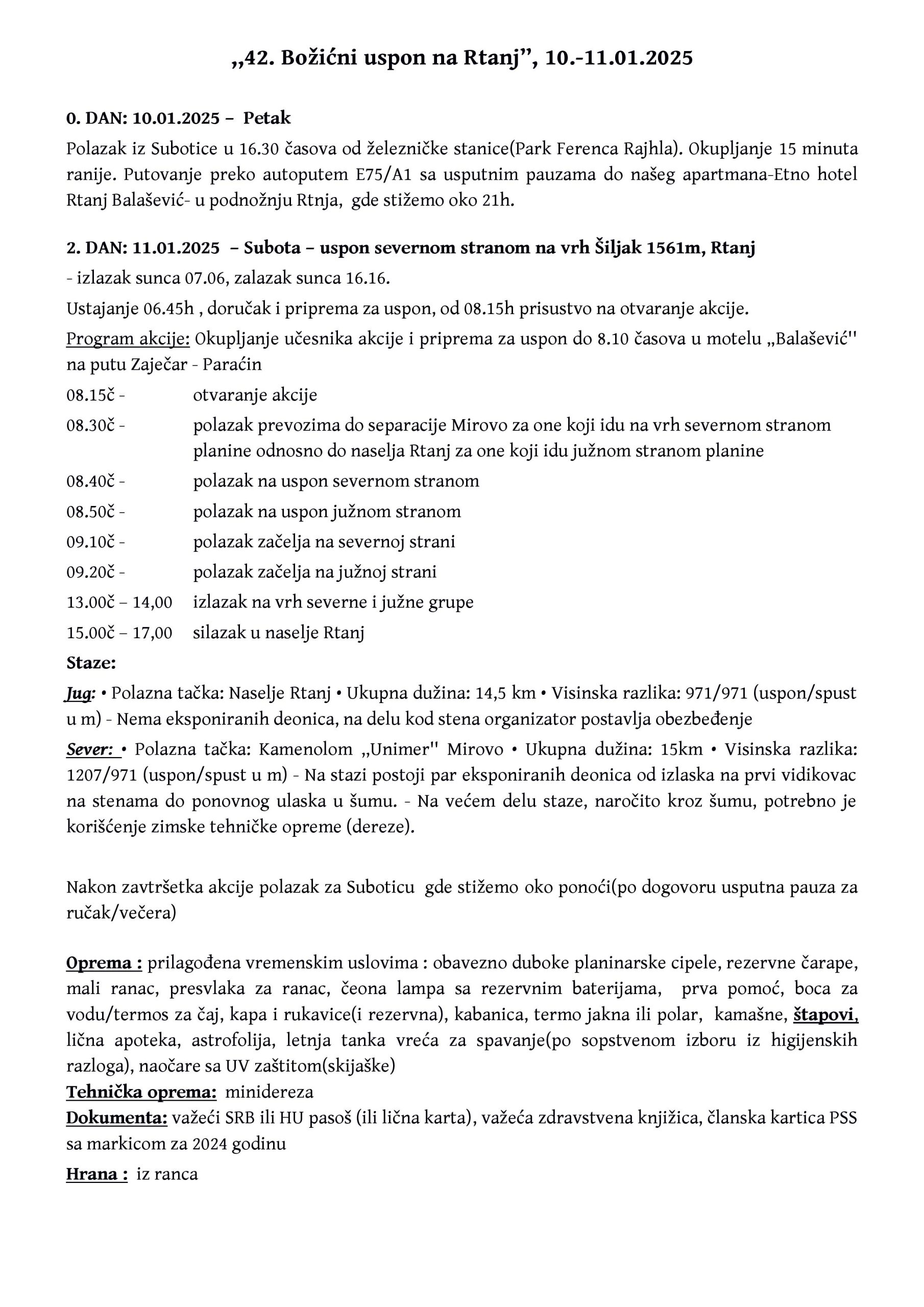 NAJAVA AKCIJE: ,,42. Božićni uspon na Rtanj”, 10.-11.01.2025