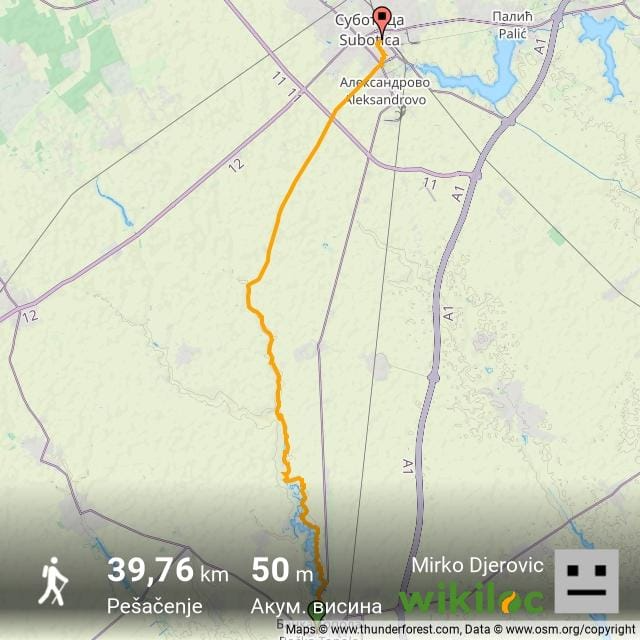Dužina staze za pešačenje je oko 21 km. Pešačenje se nastavlja trasom “Pačirska pruga” i završava se u predgrađu Subotice na stajalištu autobusa 1a ili 2, oko 18 h.